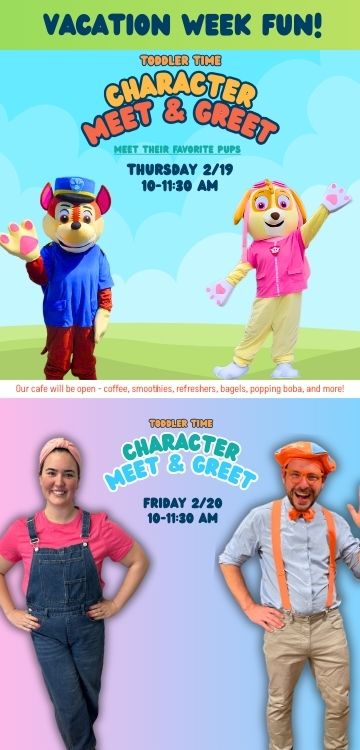 Join us for two special Character Meet & Greets at our toddler time over February break— at NO extra cost!